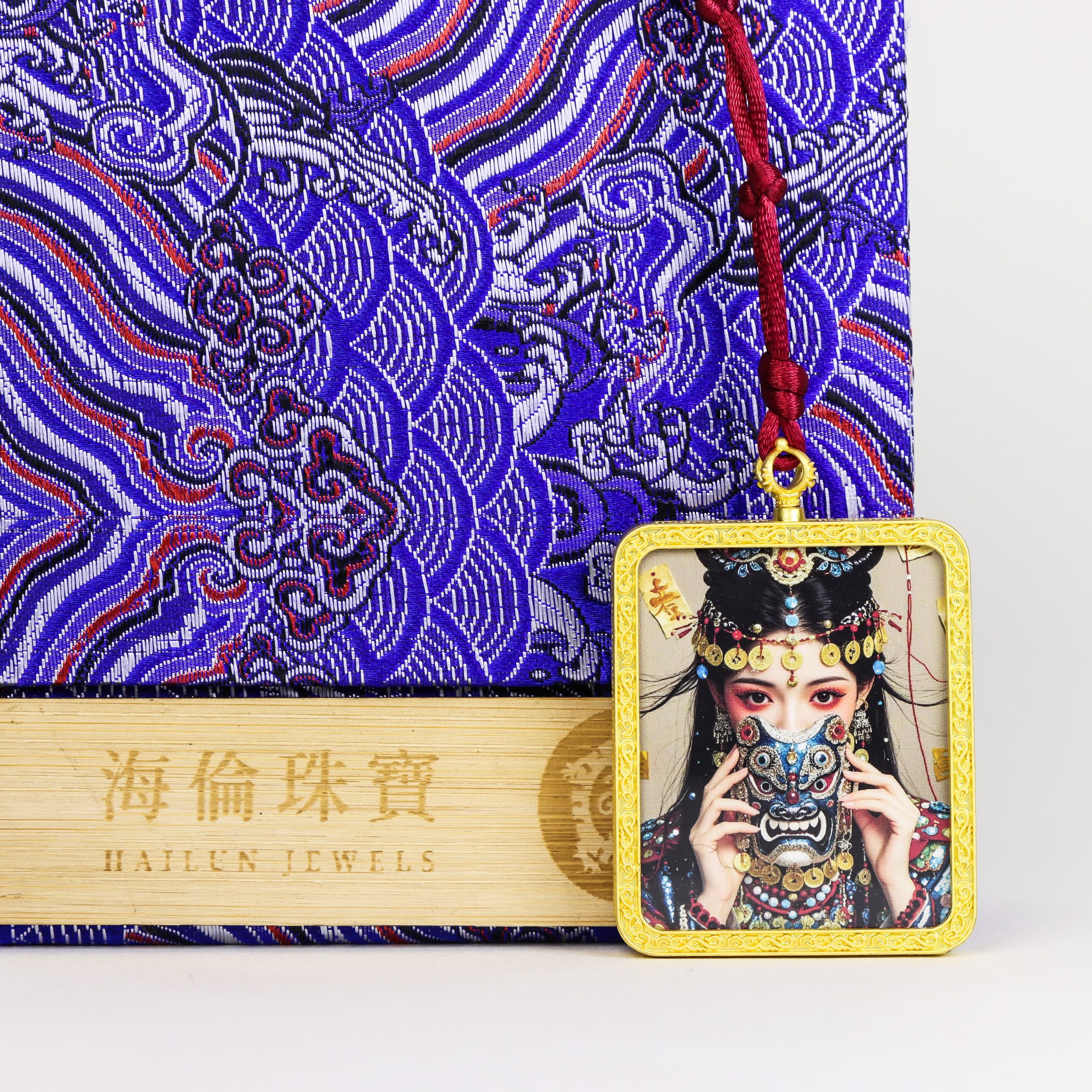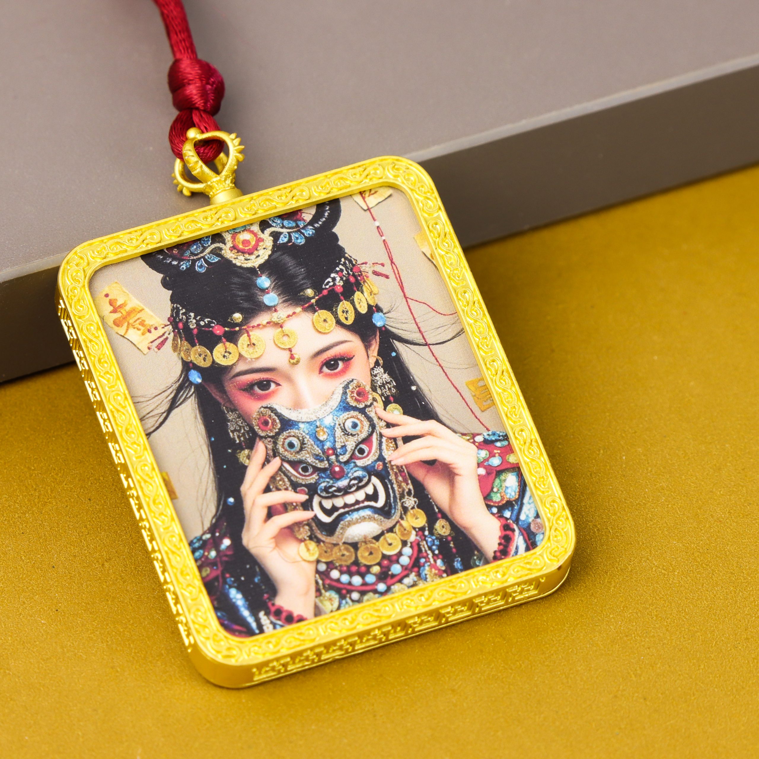 Beautiful goddess head Thangka, hand-painted in colored gold, on a metal tray, extremely popular.