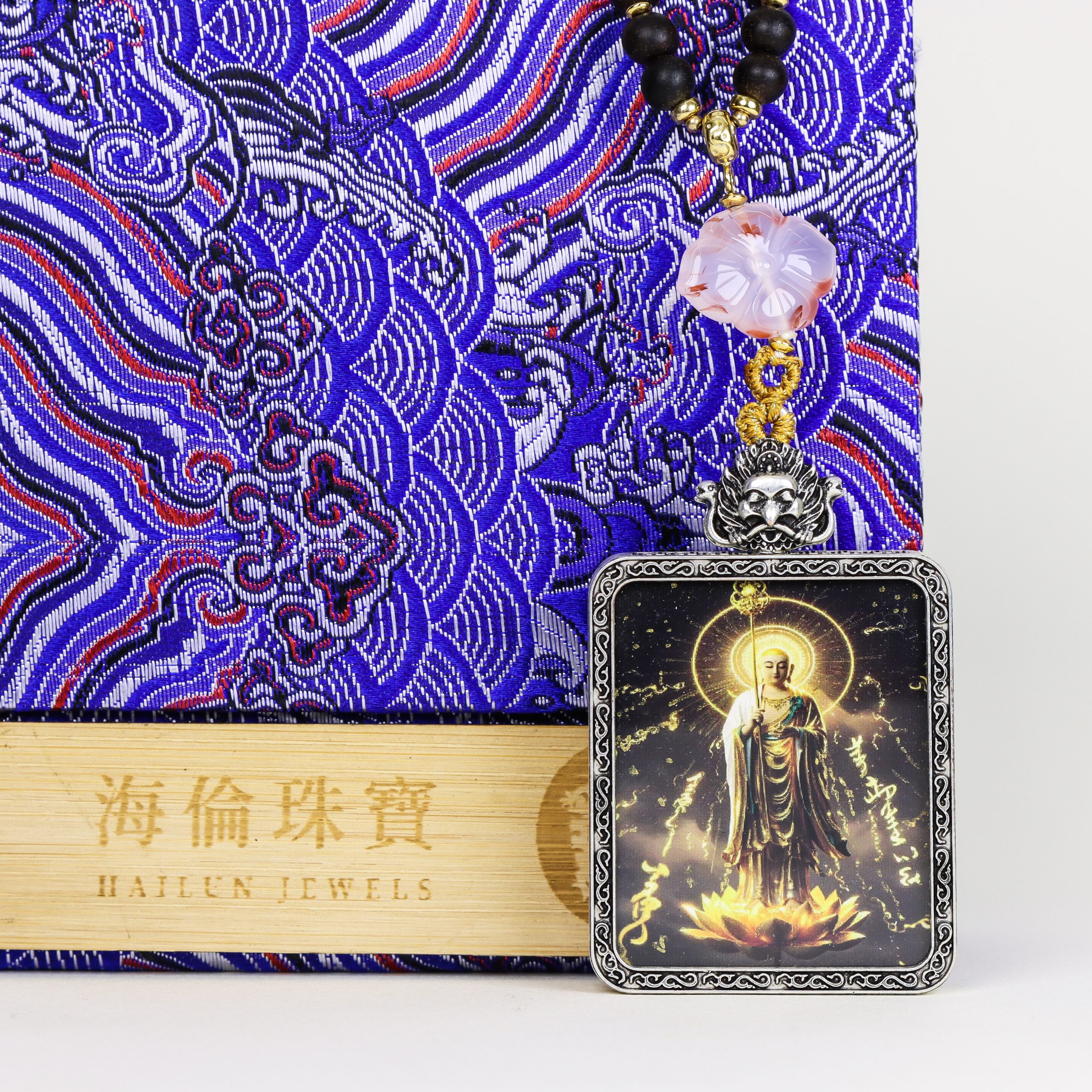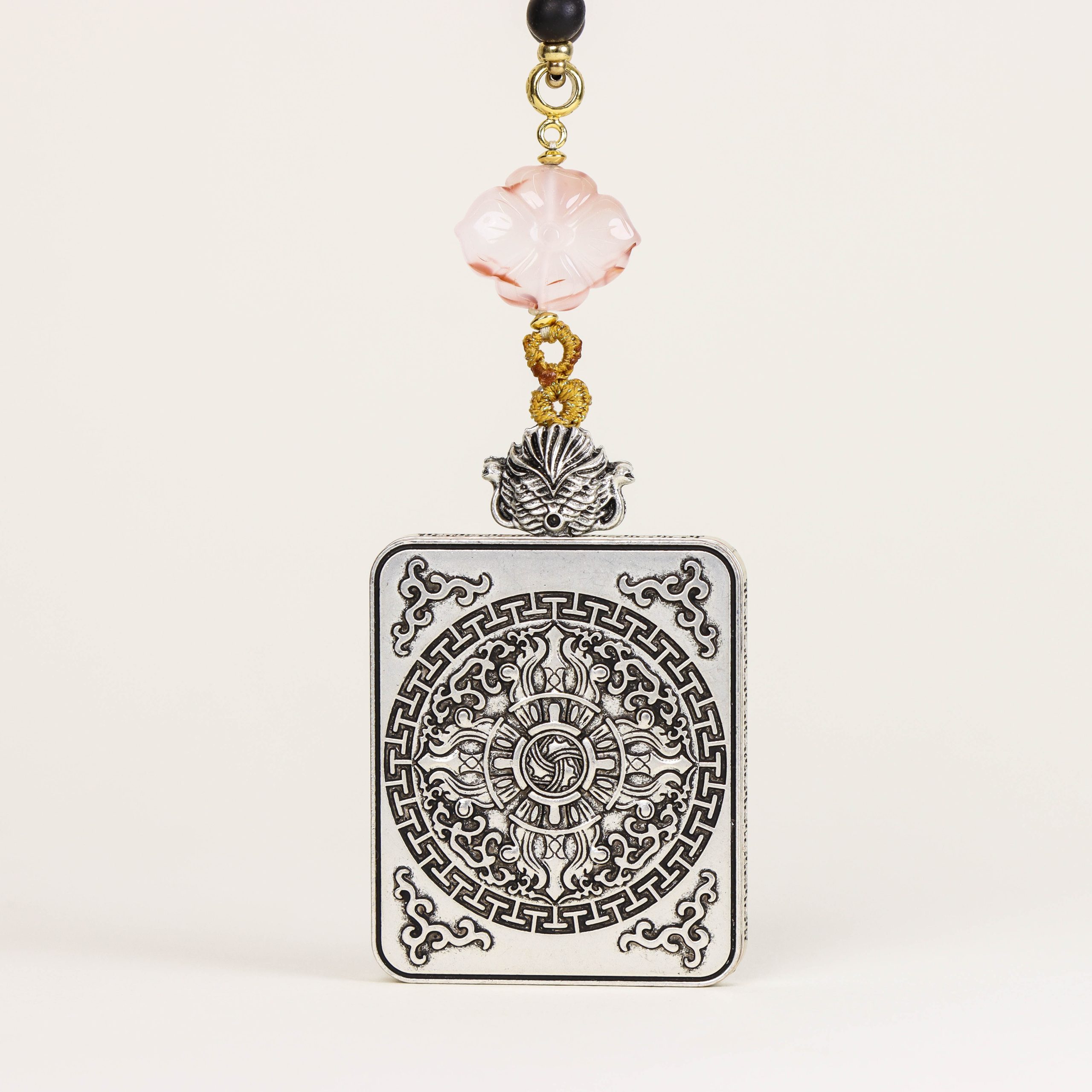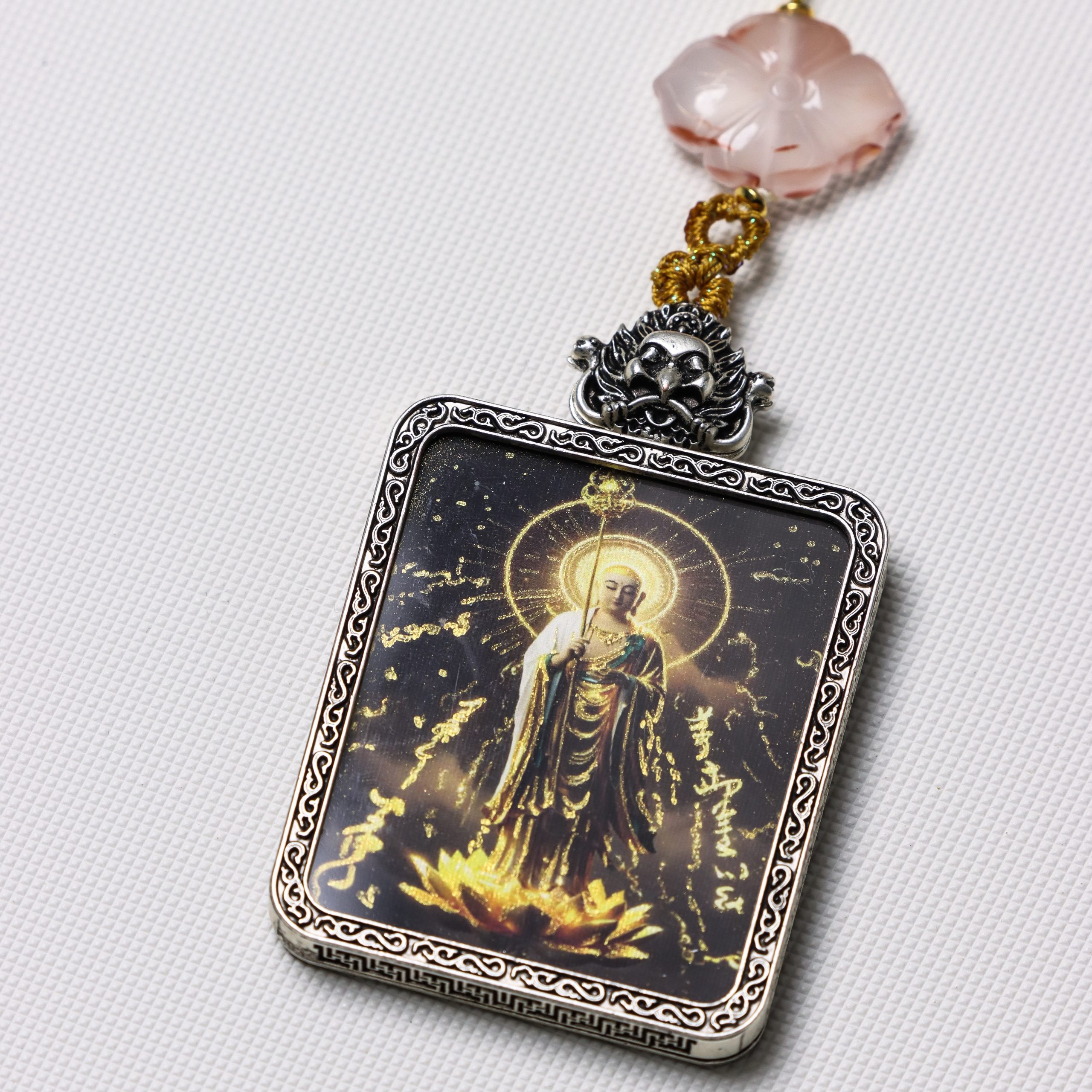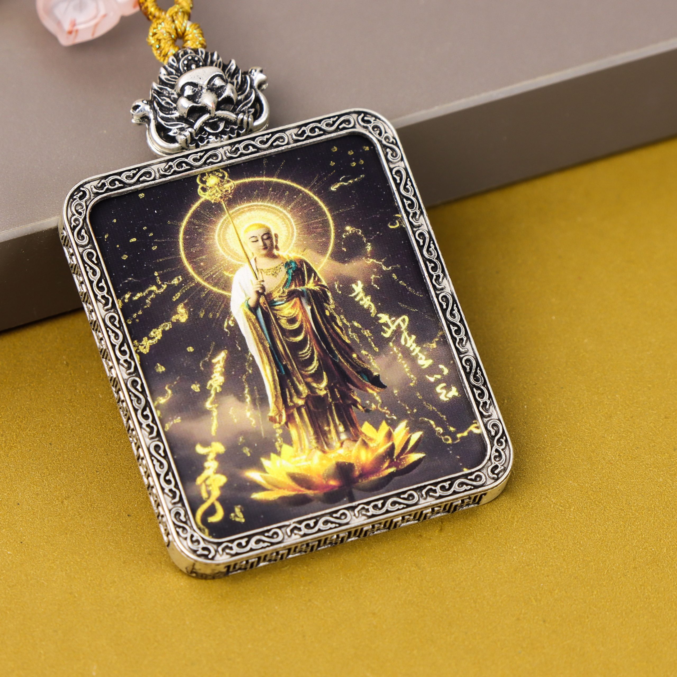 Black and gold Buddhist amulet Thangka